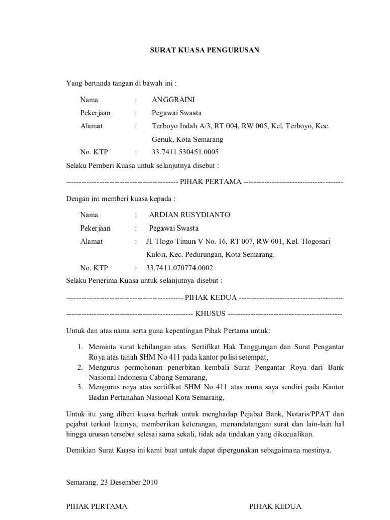 29+ contoh surat kuasa berbagai keperluan yang benar "surat kuasa" Contoh surat kuasa pengurusan tanah. Anggraini pegawai swasta terboyo indah a/3, rt 004, rw 005, kel. Dalam jual beli semacam ini ada beberapa hal yang perlu kita ketahui dan pahami. Contoh surat kuasa pengurusan sertifikat tanah doc.